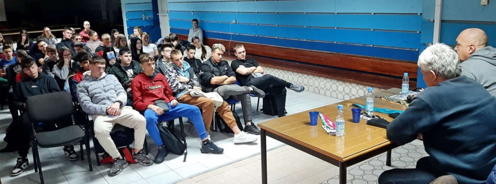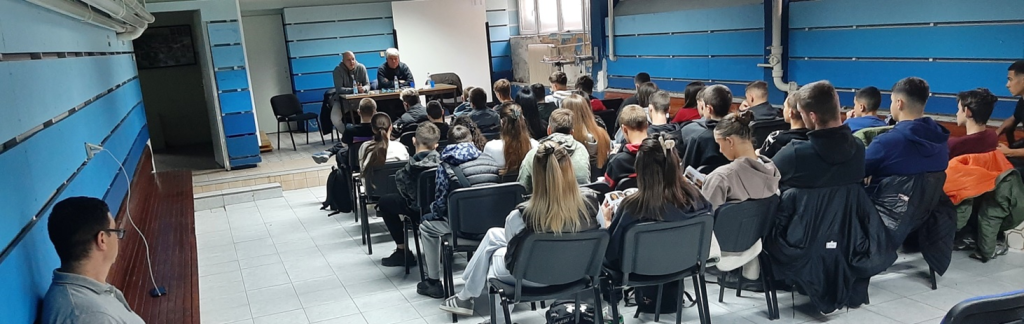 У ову угледну средњу школу стигли су Васа Мијић, олимпијски шампион и потпредседник Управног одбора Асоцијације, Зоран Панчић, олимпијски вицешампион и председник Скупштине и Добривоје Антонић, професор спорта и физичког васпитања и програмски директор Асоцијације. На сваком кораку могла се видети висока организованост и ред у школи, од хигијене, изгледа свих простора, до односа ученика и њихових професора.